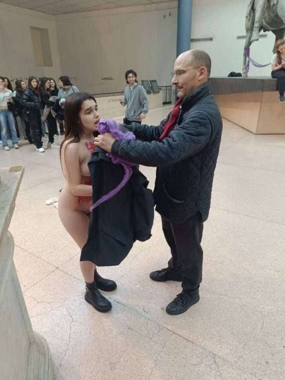 Azione diretta nonviolenta ai Musei Capitolini. Attivista di Ribellione Animale si denuda