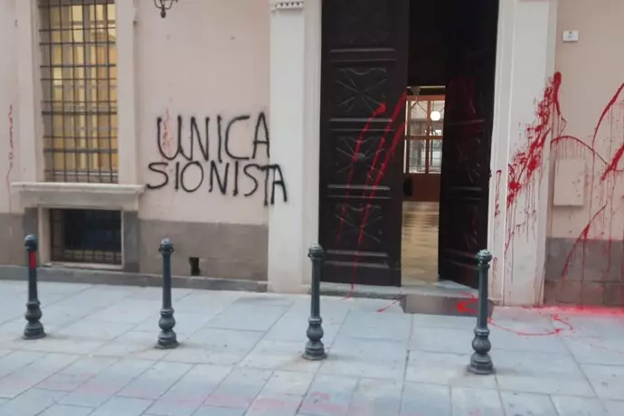 “Unica Sionista”. E’ la scritta comparsa sulla facciata del palazzo storico dell’Università di Cagliari, nel rione Castello.