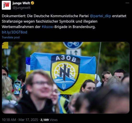 “Il DKP presenta una denuncia penale per simbolismo fascista e pubblicità illegale da parte della Brigata Azov nel Brandeburgo: