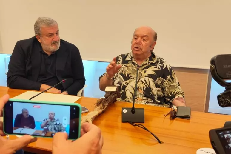 Il docufilm, ha spiegato Banfi, si girerà in gran parte nel teatro Petruzzelli dove agli esordi l’attore desiderava di esibirsi perchè lo considerava un segno del successo. Poi lo ha fatto, in varie occasioni e tra queste, in conferenza stampa ha ricordato quella in cui recitando nella compagnia che accompagnava Domenico Modugno, in chiusura dello spettacolo fu chiamato dal grande cantate che rivolgendosi al pubblico e a suo padre disse: “ricordatevi, questo un giorno sarà famoso”. Tra battute, racconti ironici sul suo passato, l’attore che ha compiuto da poco 88 anni, e da giorni viene festeggiato in occasioni pubbliche, ha raccontato di amare Bari ma di avere per un periodo “odiato i baresi, perchè molti intellettuali o pseudo tali, di 20/25 anni fa, scrissero ‘non vorremmo più vedere Banfi nel mondo dello spettacolo perchè rovina l’idioma pugliese”. “L’idea del docufilm – racconta – è di fare lavorare Banfi e Zagaria, che litigano sempre, e il padre, di racchiudere un pò di storie della mia vita facendo interviste anche a persone che non ci si aspetta che parlino di me, tipo Sgarbi, di questo modo culturale della televisione e della politica dove ho capito che tutti quanti mi vogliono bene”. “Quindi – aggiunge – ognuno dirà la sua opinione compresa, se ci riuscirò, quella del Papa, con il quale siamo amici, chiacchieriamo spesso e che, con tutt’ l’ cazz’ ca’ tene, mi ha telefonato per farmi gli auguri”.
