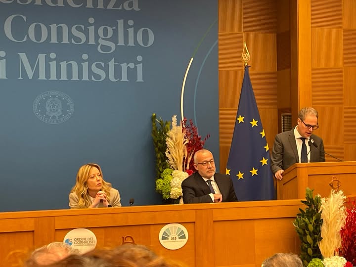 Carlo Bartoli durante il suo intervento in apertura della conferenza stampa della premier Giorgia Meloni. Il 2025 è stato un anno molto difficile per i giornalisti – ha ricordato Bartoli -. Abbiamo assistito alla più grande strage di colleghi. In Ucraina sono stati uccisi 28 operatori dei media, spesso colpiti in modo consapevole e diretto. Oltre trecento i giornalisti palestinesi assassinati dall’esercito israeliano nella striscia di Gaza per oscurare la tragedia che si è consumata.