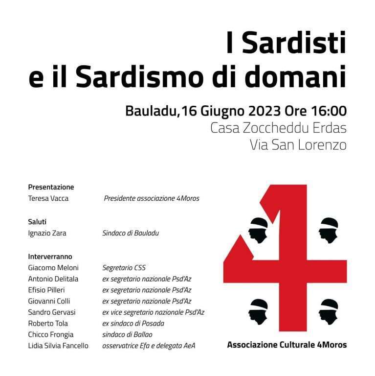 Venerdì 16 giugno si svolge a Bauladu il convegno “I Sardisti e il Sardismo di domani” promosso dall’associazione culturale 4MOROS.