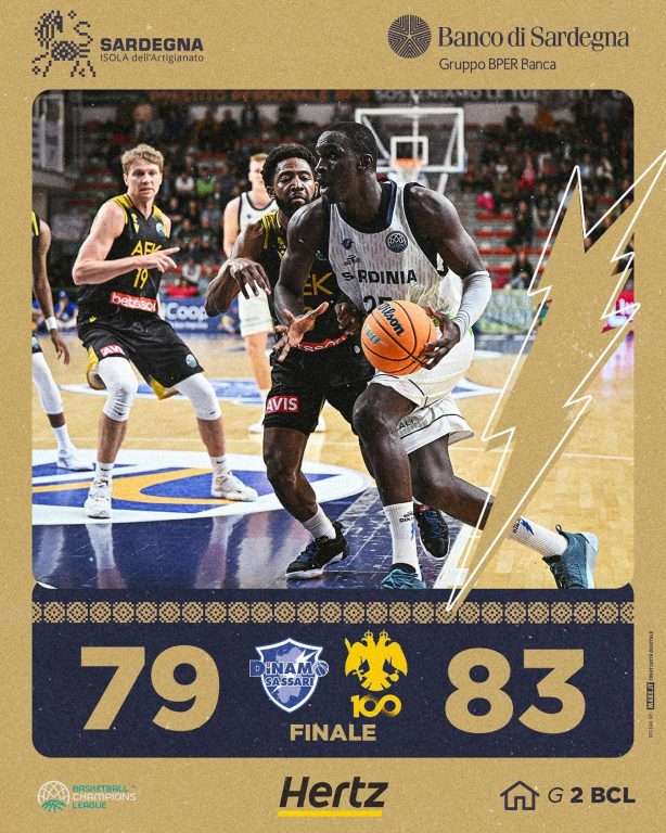 Una sconfitta che brucia per il Banco di Sardegna, che ha praticamente dominato nel primo tempo, chiuso avanti di 14 punti, ha toccato un massimo vantaggio di 19 punti a metà del terzo quarto, per poi franare e lasciarsi sorpassare dai greci negli ultimi 40 secondi del match, dopo essere stata sempre avanti.