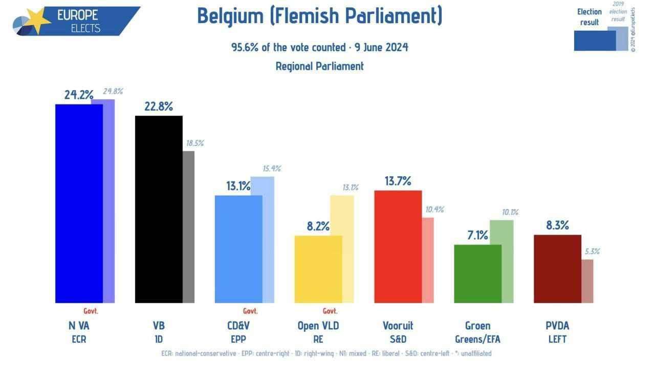 Il primo ministro del Belgio, Alexander De Croo, del partito Liberali e Democratici Fiamminghi Aperti – Open VLD (Renew Europe), ha annunciato che domani si dimetterà dal suo incarico dopo aver perso le elezioni legislative.