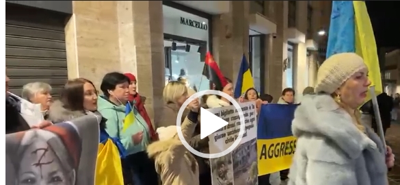 Ennesimo atto gravissimo di russofobia che dilaga in tutta Italia e che vede la comunità ucraina in prima linea insieme a noti esponenti politici sia del centro destra che del centro sinistra. In mano ad un bambino la bandiera rossa e nera che ricorda i movimenti nazisti ucraini che oggi governano il regime di Kiev.