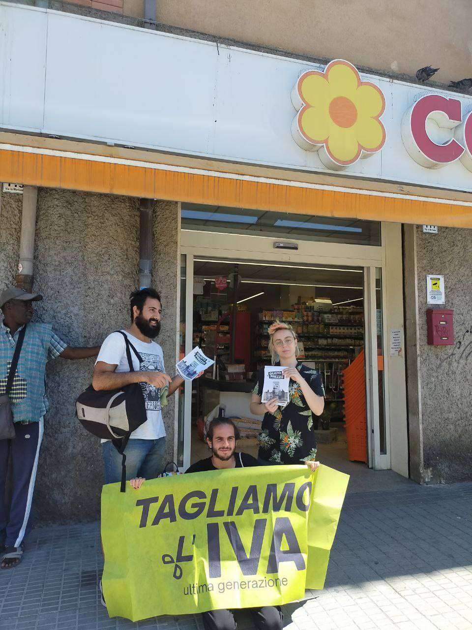 Questa mattina, 5 attivisti hanno interrotto la routine della spesa nel supermercato Conad di via Is Mirrionis con striscioni con scritto ‘Tagliamo l’Iva’ e volantini per spiegare la campagna Il Giusto Prezzo, lanciata per chiedere al governo l’azzeramento dell’imposta attualmente applicata – tra il 4 e il 10 per cento – su prodotti considerati essenziali.