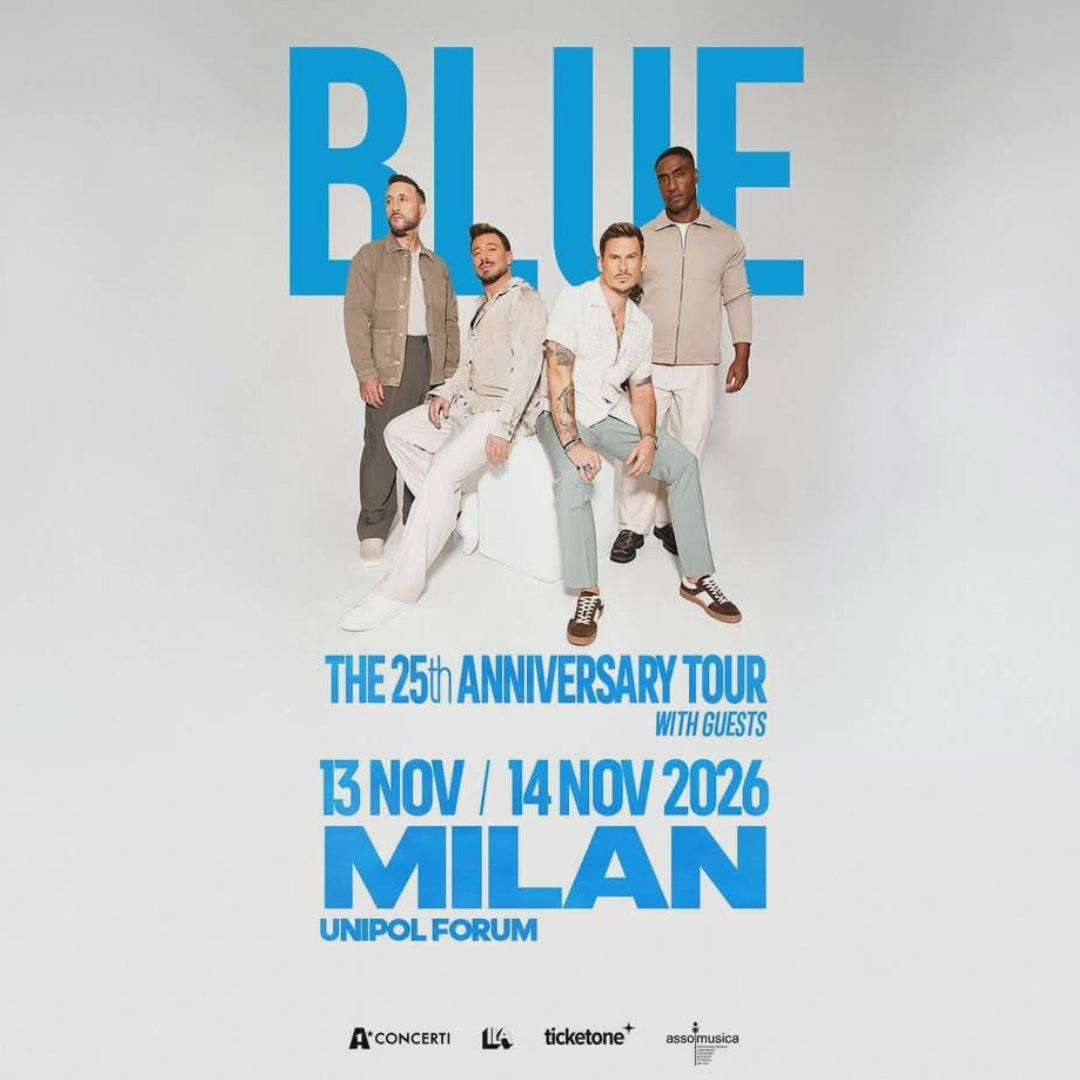 Dopo il successo del loro tour nei palazzetti che ha visto tutte le date sold out, i Blue preparano, per il 2026, un tour speciale con cui festeggiare 25 anni di musica, successi ed emozioni. Questo evento offrirà ai fan un’opportunità unica di rivivere il loro straordinario percorso musicale, attraverso le hit che hanno segnato la storia della band. I Blue ossia Antony Costa, Duncan James, Lee Ryan e Simon Webbe, sono una delle band britanniche di maggior successo degli ultimi 2 decenni. Formatisi a Londra nel 2000, i quattro hanno venduto 15 milioni di dischi, posizionato numerosi singoli al primo posto della classifica UK, collaborato con alcune delle più grandi star del mondo tra cui Elton John e Stevie Wonder, e vinto numerosi premi tra cui due prestigiosi BRIT Awards per Best British Breakthrough Act e Best British Pop Act.
