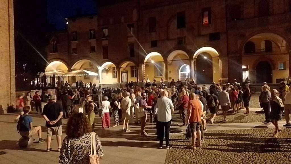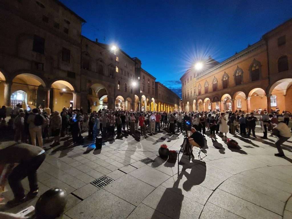 Martedì 5 Agosto si é tenuta presso Piazza Santo Stefano (Bologna), l’iniziativa di protesta civile contro il divieto del Comune di Bologna all’esibizione del pianista Aleksandr Romanovsky.