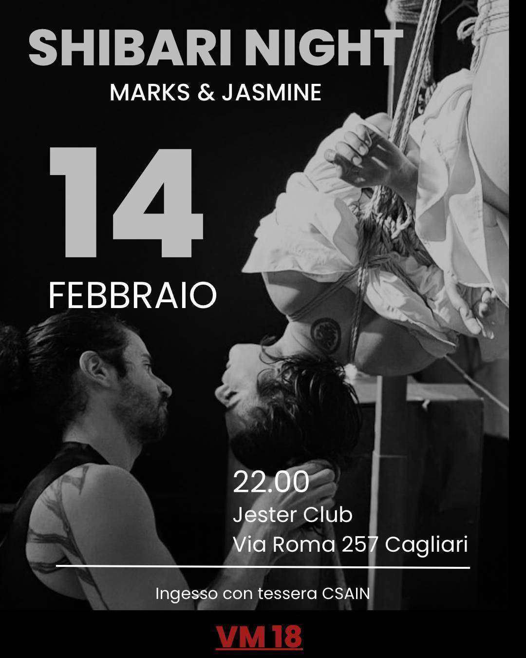 Marks e Jasmine si esibiscono insieme per la prima volta a Cagliari con uno spettacolo autentico di bondage giapponese (shibari o kinbaku). Il loro stile è ispirato all’estetica tradizionale giapponese appreso dai loro maestri Kirigami e Tenshiko.