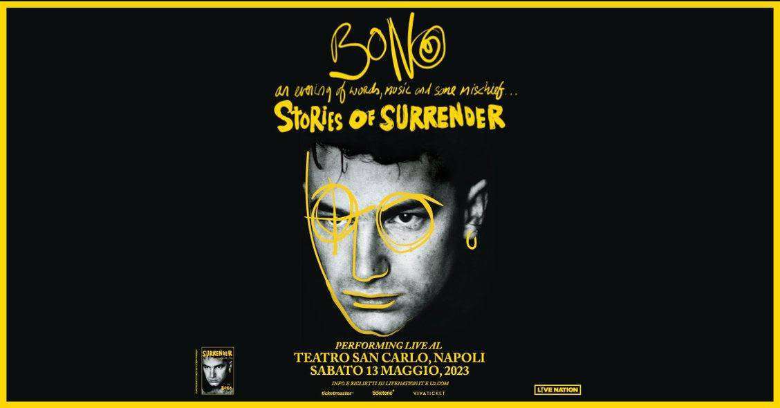Live Nation ha dato l’annuncio che Bono porterà per la prima volta in Italia il suo acclamato spettacolo “Stories of Surrender” per un’unica performance nel più antico teatro d’opera del mondo, il Teatro di San Carlo di Napoli, sabato 13 maggio.