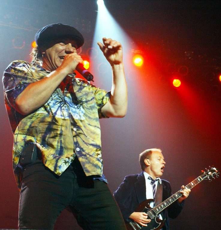 Brian Johnson and Angus Young of AC/DC (Photo by Debra L Rothenberg/FilmMagic)
