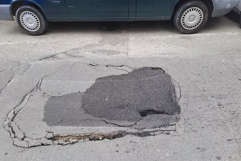 Un improvviso cedimento del manto stradale ha causato una buca in via Pola a Cagliari, subito dopo l’incrocio con viale Trieste.