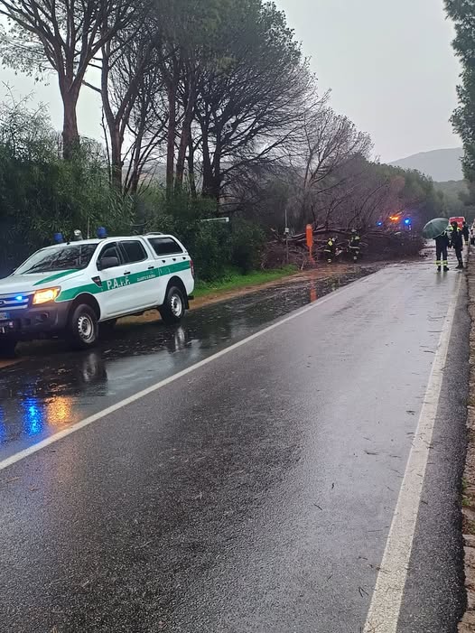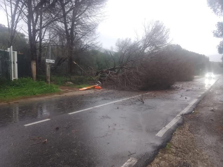 La burrasca sta iniziando a interessare in queste ore la costa meridionale della Sardegna, dove è crollato anche un albero lungo la strada provinciale 17 all’altezza del camping di Capitana.