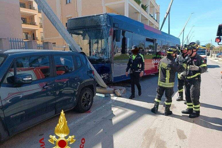 Un autobus di linea dell’Arst ha concluso la sua corsa contro un palo dell’illuminazione pubblica e ha poi impattato con un’auto.