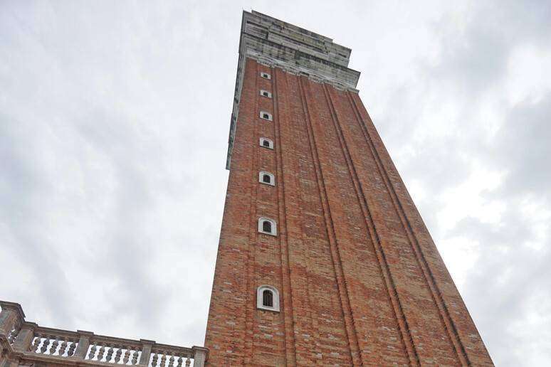 Alcuni pezzi di cemento armato si sono staccati dalla cima del campanile di San Marco, a Venezia.