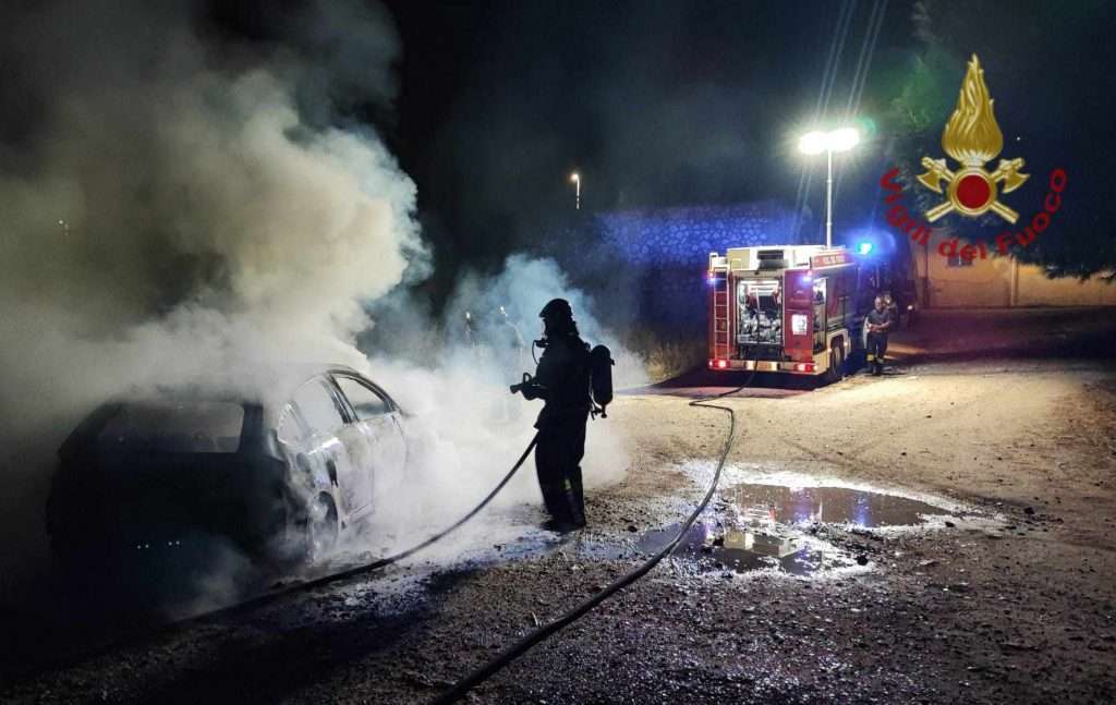 Intervento dei Vigili del fuoco nella notte per l’incendio di un’autovettura in sosta in piazza Maria Callas nel quartiere di Sant’Elia a Cagliari.