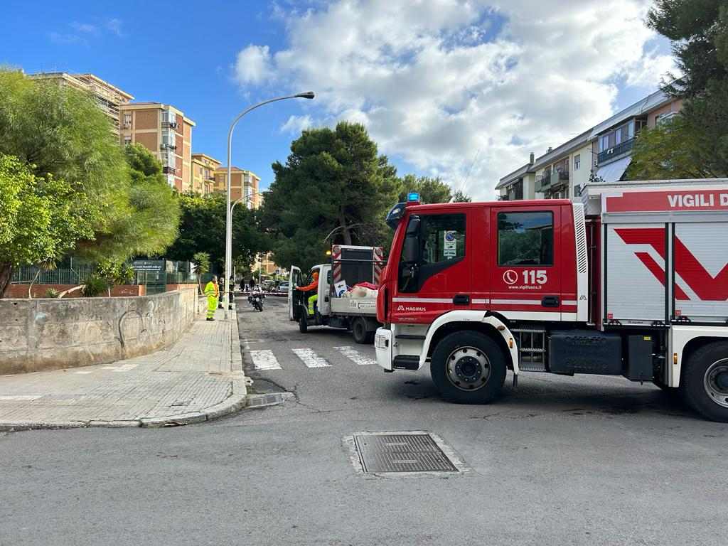 Questa mattina in via delle Rondini nel Quartiere del Sole a Cagliari sono intervenuti gli operai del Comune di Cagliari insieme ai mezzi dei Vigili del Fuoco per il cedimento del manto stradale.