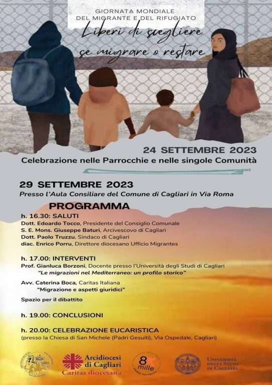 Venerdì 29 settembre, presso l’Aula consiliare del Comune di Cagliari (via Roma), si terrà un convegno sui temi delle migrazioni promosso dall’Ufficio diocesano Migrantes.