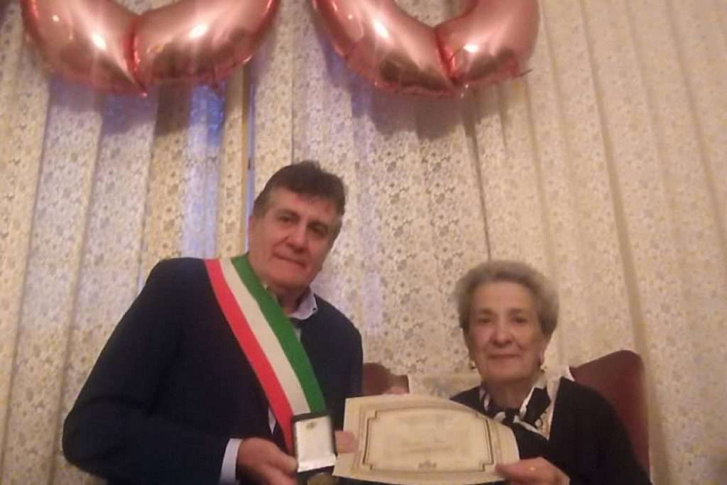 Edoardo Tocco ha portato in dono alla signora Pala nel giorno del suo compleanno numero 100, una pergamena ricordo e una medaglia del Comune di Cagliari.