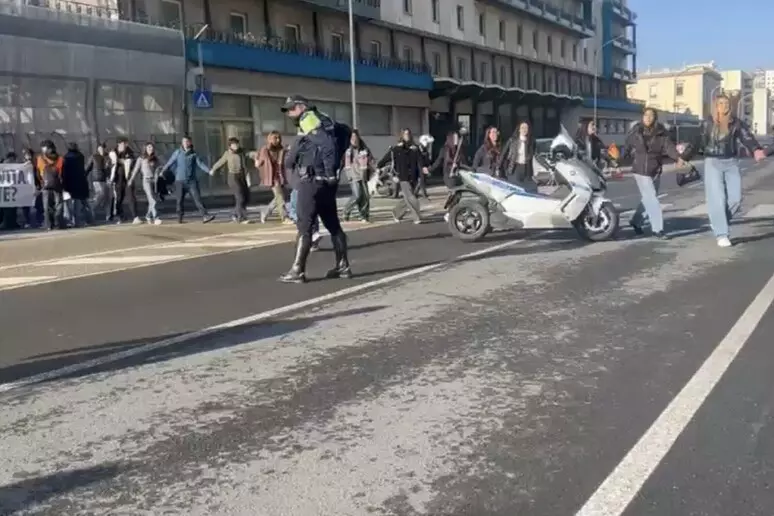 In duemila non sono andati a scuola e hanno attraversato le strade intorno al liceo scientifico Alberti presi per mano.