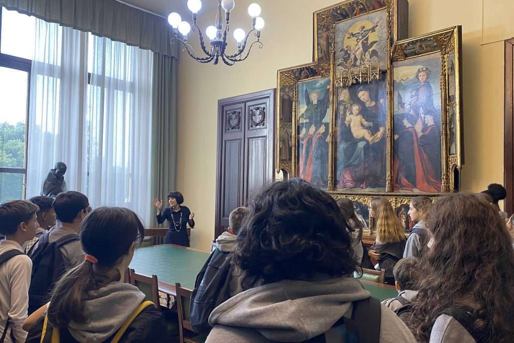 Oltre 40 ragazzi di due classi della 2^ e una 3^ media, accompagnati dalle insegnanti, sono stati accolti dal personale dell’Ufficio di Gabinetto del Sindaco per poi essere guidati alla scoperta delle sale più suggestive del Municipio.