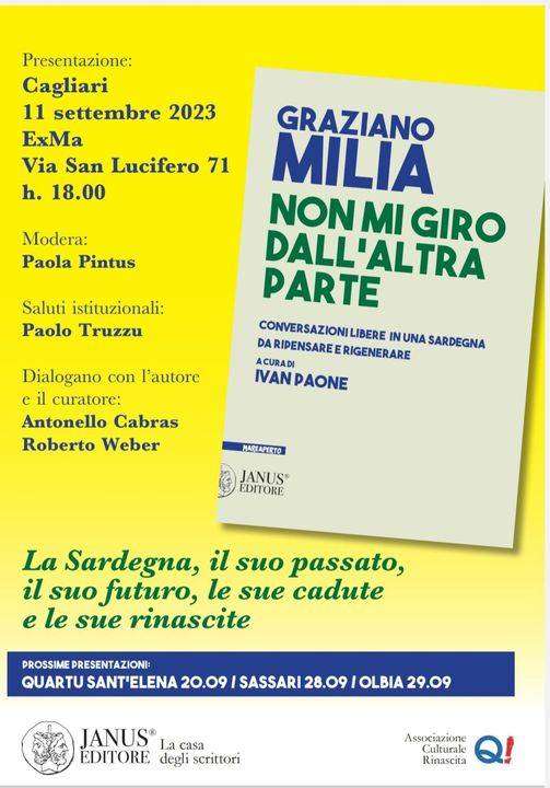 !Al termine Paone mi chiese se poteva far precedere l’intervista da una mia breve biografia, per come lui la interpretava, e se poteva inserire le tante considerazioni di storia personale che nei nostri dialoghi avevo fatto. Rimasi un pò sorpreso ed indeciso, ma alla fine acconsentii all’insegna del più classico “perché no?”. D’altronde sono una persona libera, non più giovane, con tante esperienze alle spalle che non avrebbe senso tenere nascoste” … “Ne è scaturito quanto leggerete. Forse non è un libro vero e proprio. Sicuramente non è un manifesto politico o programmatico. Semplicemente è l’espressione di opinioni, punti di vista, convinzioni su dove siamo come Sardi, partendo da dove siamo stati per cercare di immaginare dove dovremmo stare in futuro”, conclude Milia.