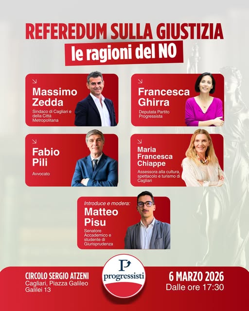 Ne discuteremo insieme agli ospiti indicati nella locandina per difendere l’equilibrio dei poteri, vero pilastro della nostra democrazia”, affermano i promotori dell’evento che è in programma presso il Circolo Sergio Atzeni in Piazza Galileo Galilei 13, Cagliari il 6 Marzo 2026, dalle ore 17:30.
