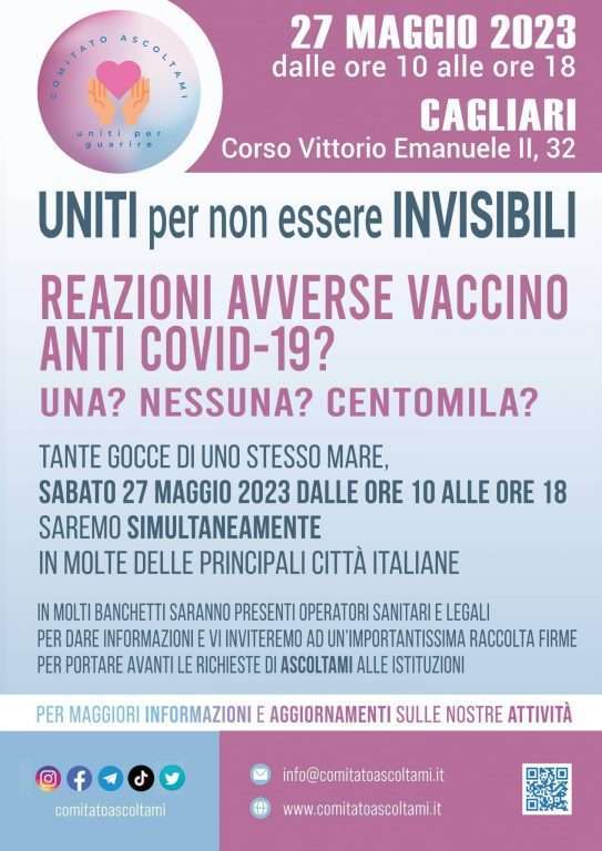 Il Comitato Ascoltami-Reazioni avverse-Uniti per guarire, nato nell’ottobre 2021 in piena pandemia da Covid-19, è stato creato da un gruppo di persone che hanno subito, sulla propria pelle, reazioni avverse dopo l’inoculazione del vaccino anticovid-19.