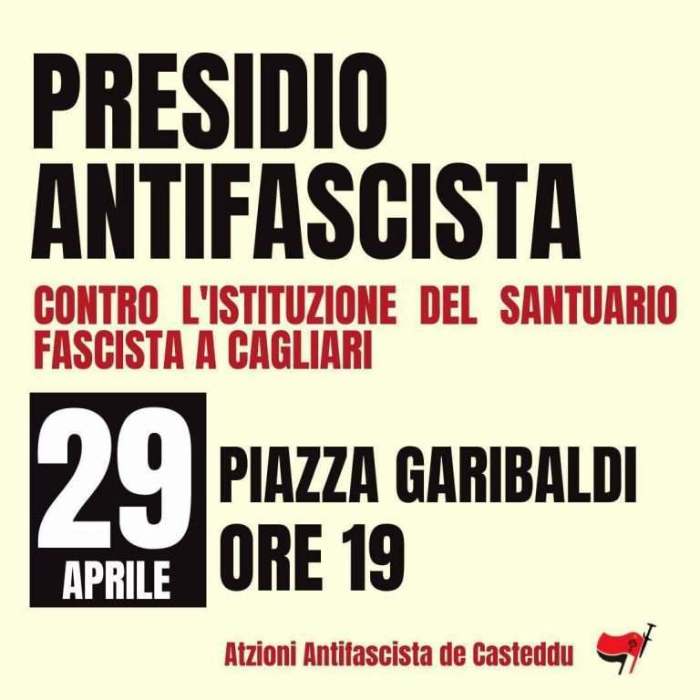 “Lunedì 29 Aprile alle 20 i fascisti di CasaPound e Blocco studentesco faranno un corteo di commemorazione del militante fascista Sergio Ramelli che si concluderà nella piazzetta a lui dedicata dall’ex sindaco Truzzu”, inizia così il testo di un volantino distribuito a Cagliari e sui social, dove si annuncia un presidio antifascista in piazza Garibaldi.
