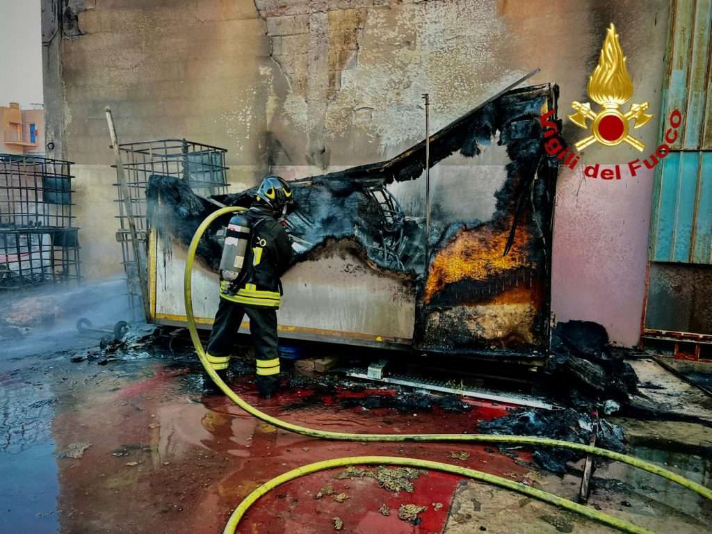 Sul posto sono giunte una squadra dei Vigili del fuoco, col supporto di due autobotti ed il carro autoprotettori, che ha provveduto allo spegnimento delle fiamme ed alma messa in sicurezza dell’area prima che l’incendio si propagasse ad alcuni automezzi ed all’intera struttura.
