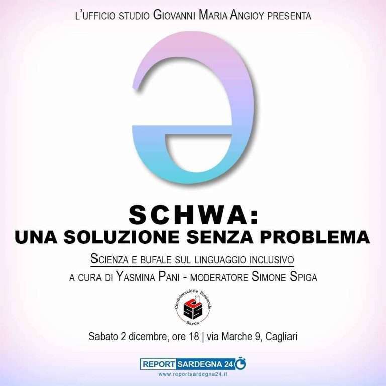 Sabato 2 dicembre alle ore 18, presso “Sa domu de is feminas e de is ominis de Sardigna” sita a Cagliari in via Marche 9, avrà luogo la presentazione del libro di Yasmina Pani “ Schwa: una soluzione senza problema – Scienza e bufale sul linguaggio inclusivo”.