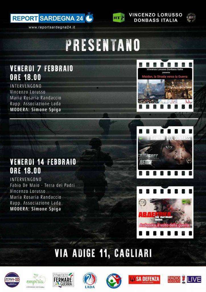 “Maidan, la strada verso la guerra”, sarà proiettato a Cagliari venerdì 7 Febbraio mentre venerdì 14 febbraio sarà la volta de “I bambini del Donbass”  e “Avdeevka, il volto della guerra”, entrambe le proiezioni saranno alle ore 18 in via Adige 11.