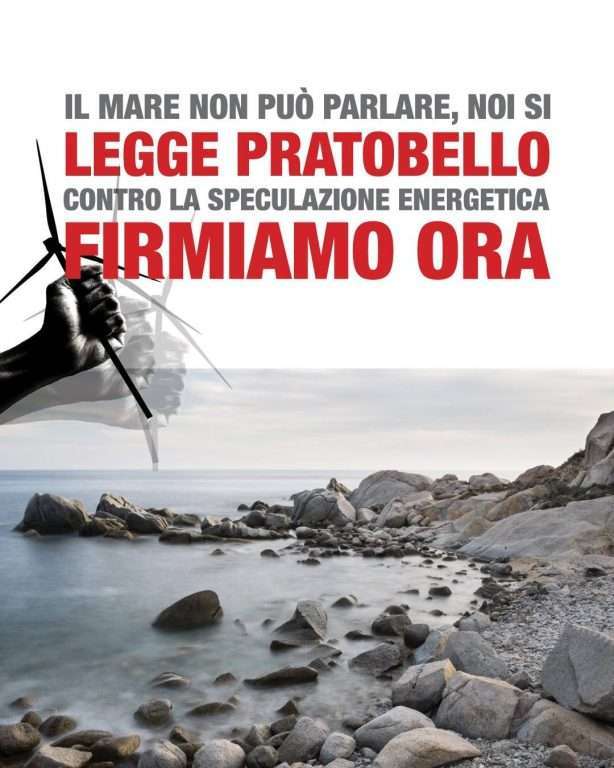 È possibile aderire alla raccolta firme per la proposta di legge di iniziativa popolare denominata “Pratobello ’24”: “Proposta di legge urbanistica della Regione Autonoma della Sardegna – Norme urbanistiche in applicazione dell’articolo 3, lettera f, dello Statuto Autonomo della Sardegna (Legge Costituzionale 3 del 26 febbraio del 1948) – disposizioni normative urbanistiche relative all’insediamento di impianti fotovoltaici industriali a terra e eolici terrestri con recepimento di principi e obblighi di tutela e valorizzazione contenuti in programmi sovranazionali, nazionali e regionali”.
