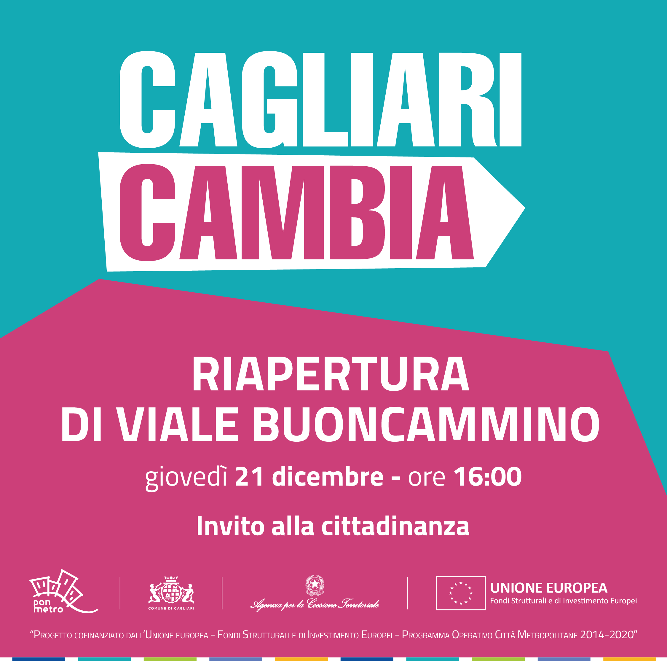 La passeggiata di Viale Buoncammino, luogo identitario, verrà riaperta e restituita alla cittadinanza giovedì 21 Dicembre alle ore 16.