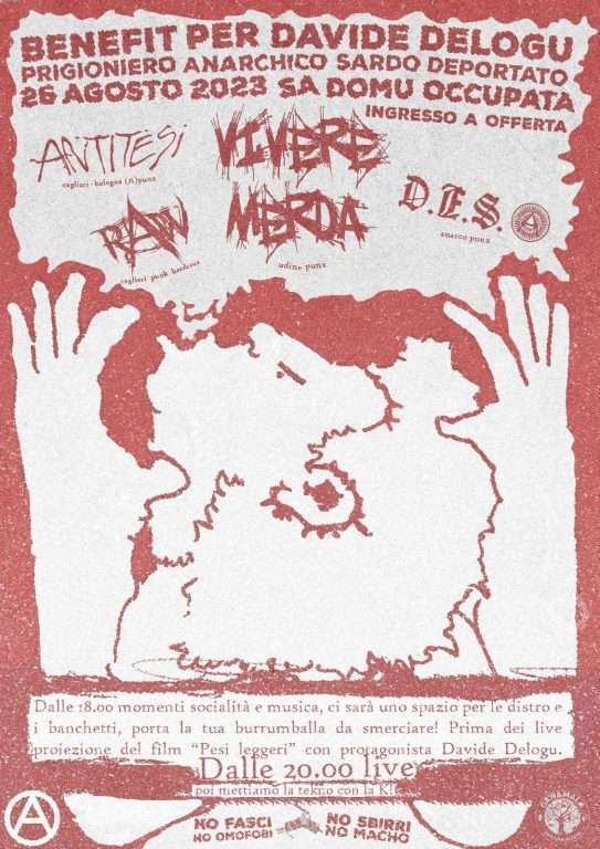 Sabato 26 agosto presso il Centro Sociale Sa Domu a Cagiari si svolgerà una serata di solidarietà e sostegno all’anarchico sardo prigioniero  Davide Delogu.