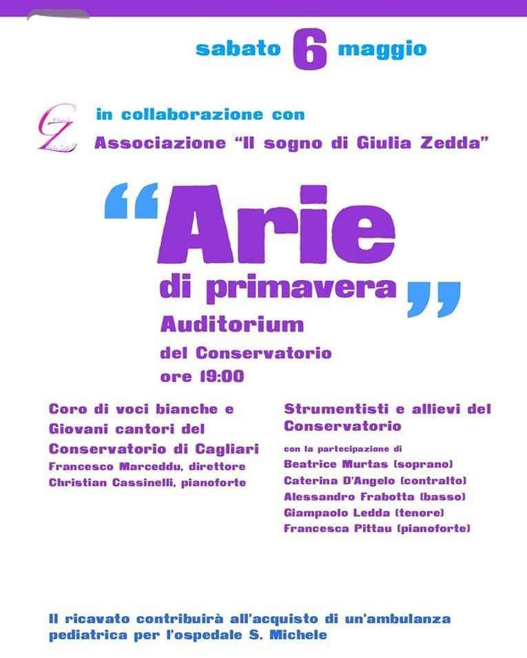 Ora un nuovo grande obiettivo e per raggiungerlo ecco un mix di musica e solidarietà. Un concerto al Conservatorio di Cagliari. Si chiama “Arie di primavera” ed è in programma sabato 6 maggio all’Auditorium del Conservatorio.