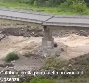 Calabria, è crollato a seguito delle precipitazioni in corso il ponte sulla statale 177 che collega Longobucco a Mirto, in Provincia di Cosenza.