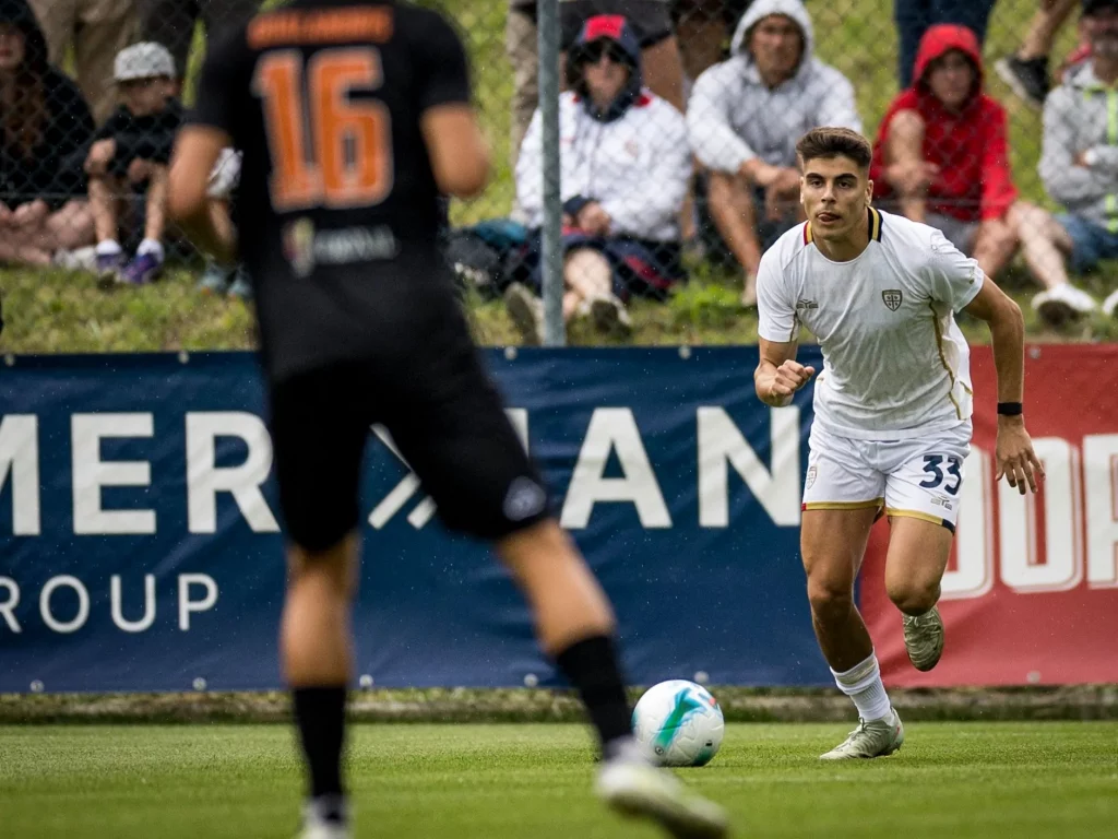 Partono bene i rossoblù: Liteta imposta la manovra e verticalizza per Zortea che di tacco smarca Luvumbo, l’attaccante angolano da dentro l’area di destro batte il portiere. L’Ospitaletto, però, trova subito il pareggio: imbucata centrale per Gobbi che a tu per tu con Caprile non sbaglia. Reagisce il Cagliari: al 14’ destro di Deiola, alto sopra la traversa. Poi Piccoli, l’attaccante tira con il destro, respinge in attacco il portiere. Si gioca su ritmi alti, nonostante ci si trovi appena all’inizio della preparazione, e il diluvio che con il passare dei minuti finisce inevitabilmente per appesantire il terreno di gioco. Al 27’ l’Ospitaletto si rende pericoloso con Bertoli che scatta sul filo del fuorigioco e si invola verso la palla ma manda fuori. Ecco allora il Cagliari: al 33’ i rossoblù si riportano in vantaggio con Deiola, bravo di testa a sfruttare un cross da sinistra di Idrissi. Passano pochi minuti e Piccoli trova il 3-1: cross da destra di Zappa, zuccata vincente del bomber rossoblù.