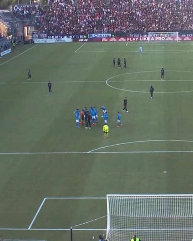 Ferito uno steward. In attesa del risultato del posticipo serale Monza-Inter, il Napoli è solo in testa alla classifica.