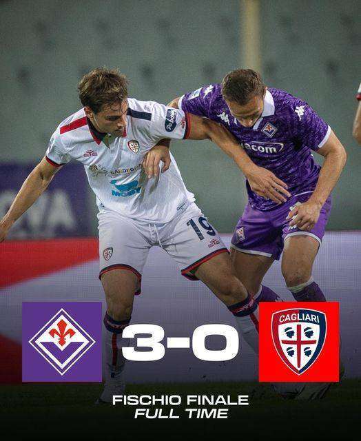 Battendo il Cagliari 3-0 la Fiorentina agguanta in classifica Juventus e Napoli a quota 14, al terzo posto.