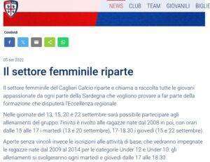 Ma da quello che leggiamo sul sito del Cagliari calcio, il settore femminile riprenderà solo per le Under 17 e le atlete che avrebbero dovuto essere impegnate nella prima squadra sembra non abbiano un campionato da disputare.