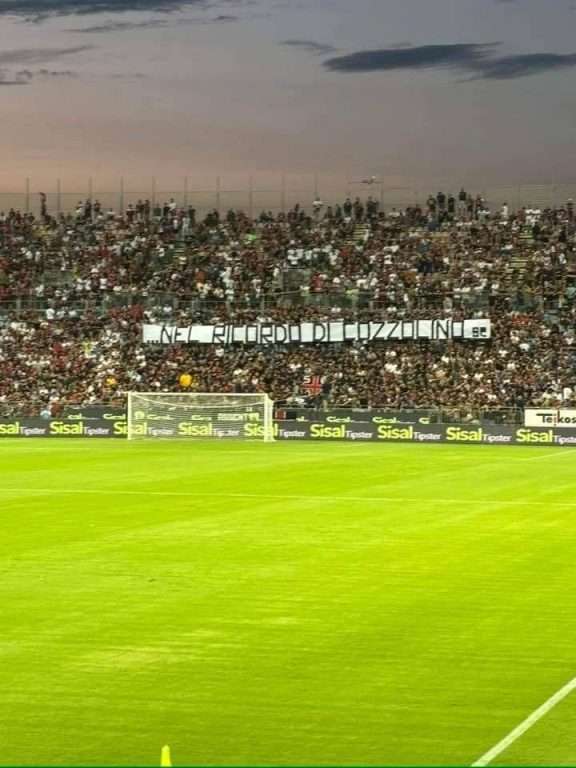 “Nel ricordo di Cozzolino”, questo il testo dello striscione esposto nella Curva Nord a Cagliari dagli Sconvolts.