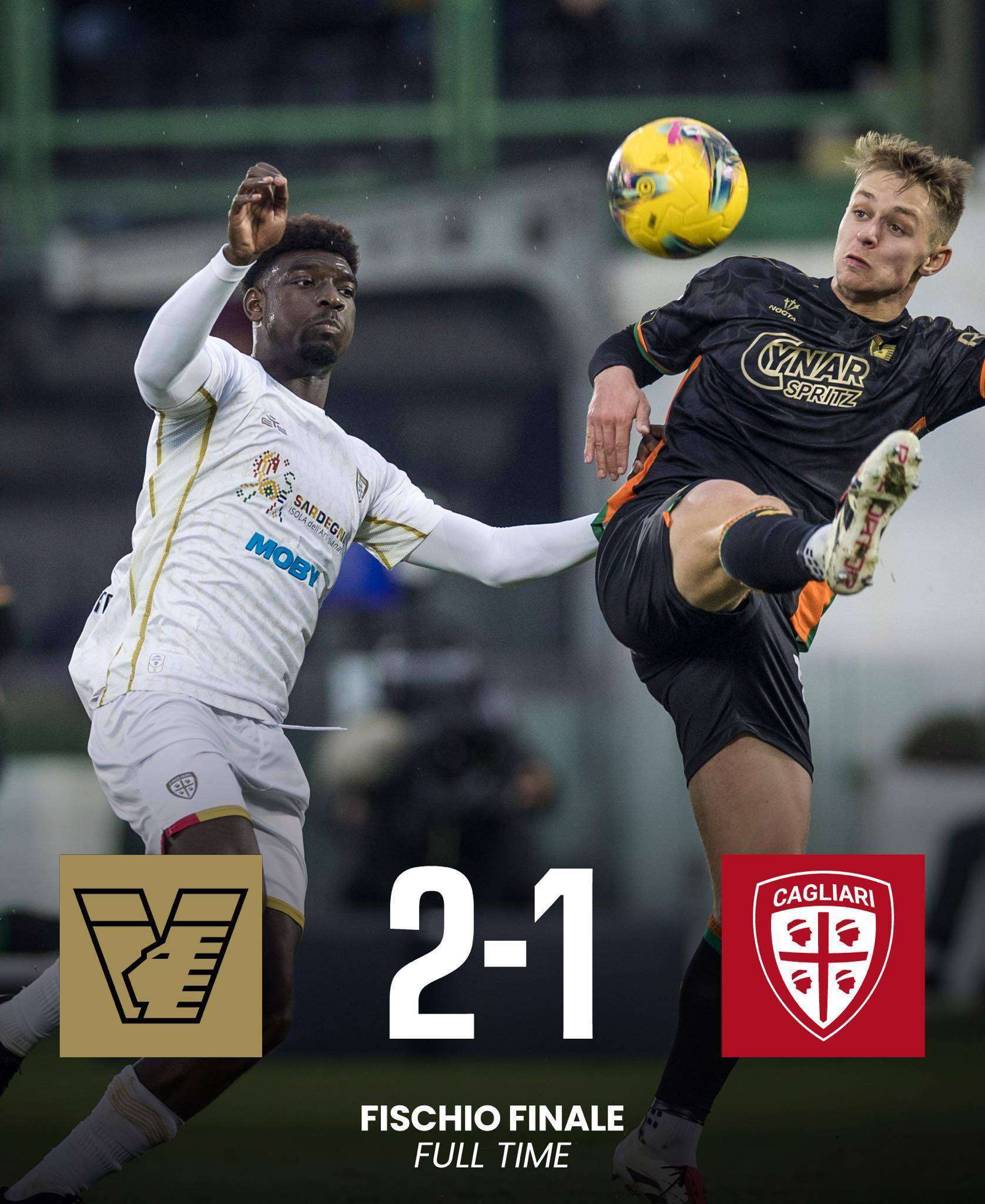 Sconfitta per il Cagliari a Venezia, finisce 2-1 con i gol di Zampano, Oristanio e Pavoletti un pomeriggio amaro nel gelo della laguna.