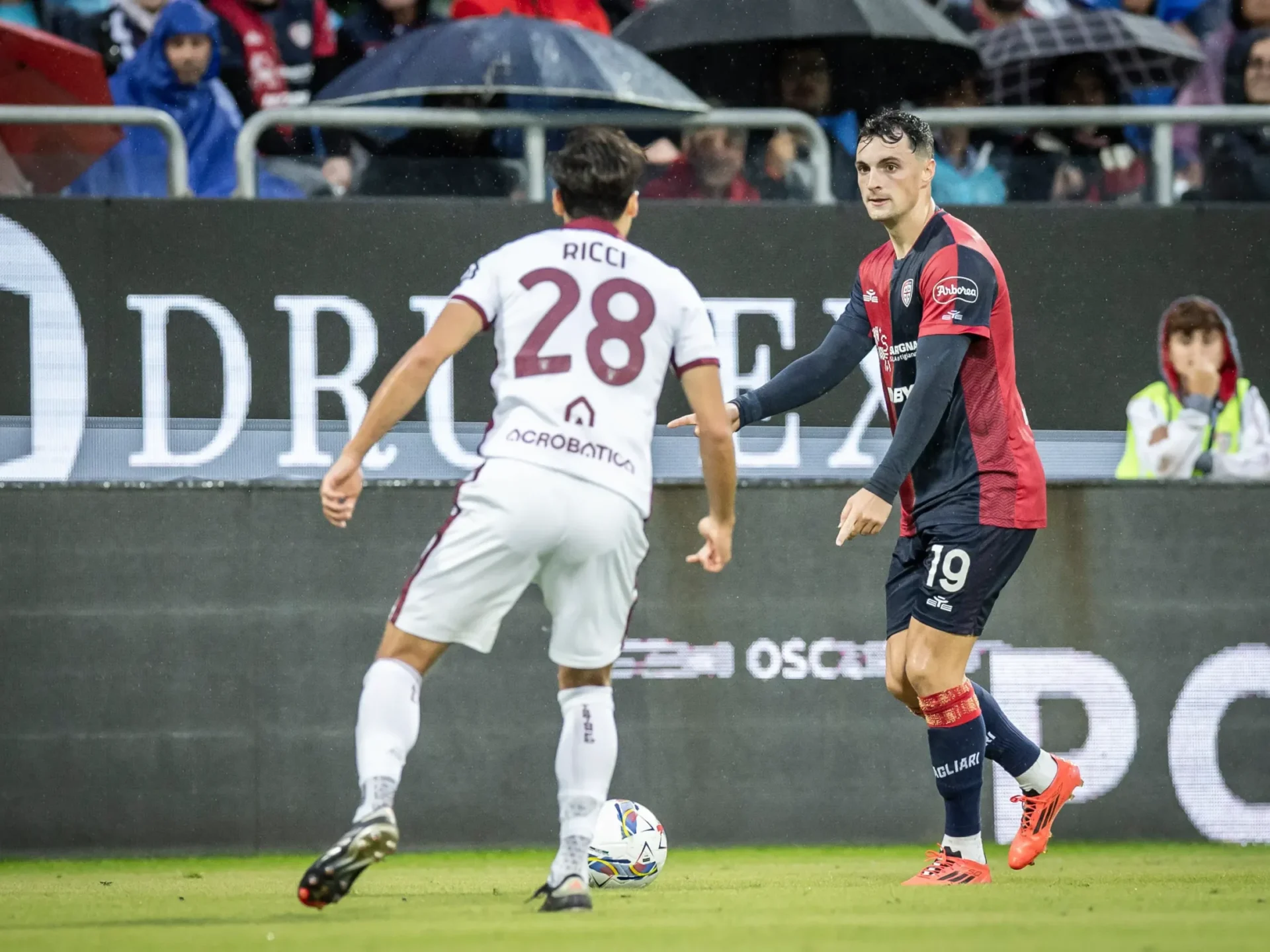 Al riposo dentro Marin per Luvumbo, rossoblù a tre in difesa e centrocampo a cinque. Inizia benissimo la ripresa il Cagliari: nei primi cinque minuti ci provano Piccoli (di testa alto), Viola (sinistro rasoterra parato da Milinkovic-Savic) e Adopo (conclusione imprecisa). Arriva anche il giallo, terzo di serata, per Masina. Ma al 55′ Linetty trova la stoccata che vale il vantaggio granata.