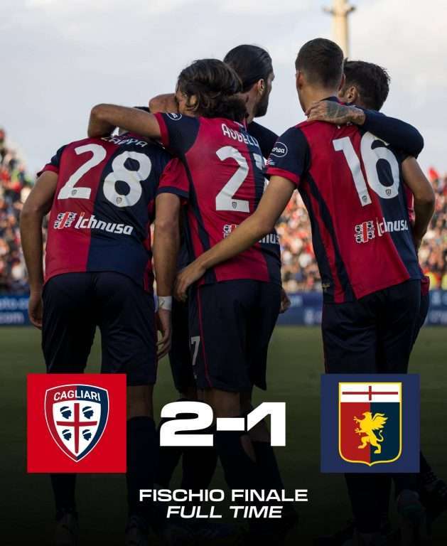 Il Cagliari batte il Genoa 2-1 e con la seconda vittoria consecutiva dopo quella rocambolesca sul Frosinone cerca di allontanarsi dalla zona retrocessione, scavalcando intanto il Verona.