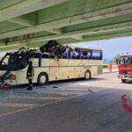 Calcola male l’altezza del ponte, pullman resta incastrato sotto il cavalcavia