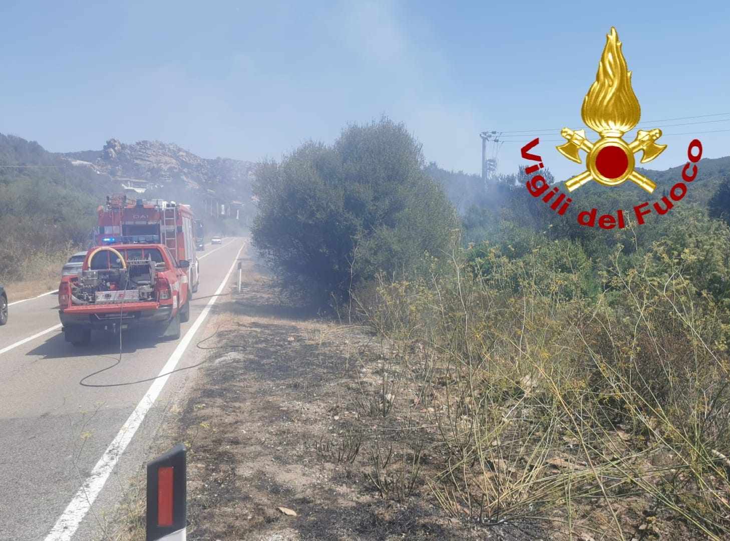 Poco prima di pranzo i Vigili del fuoco di Arzachena sono intervenuti invece sulla sulla SP 59, nei pressi di Abbiadori, per un incendio di vegetazione.