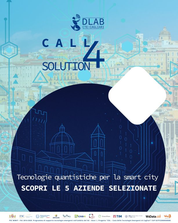 È stata pubblicata la graduatoria definitiva relativa alle cinque imprese vincitrici di Call4Solution DLab, iniziativa dedicata a start-up e PMI tecnologiche volta allo sviluppo di soluzioni innovative basate su tecnologie quantistiche e intelligenza artificiale, da applicare al contesto urbano della Smart City di Cagliari.