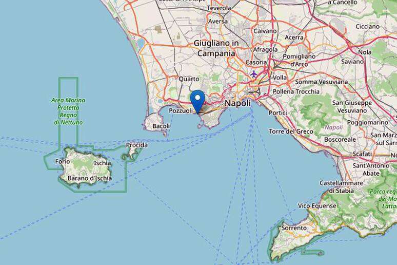 L’altra notte una scossa di terremoto di magnitudo 2,4 era stata avvertita alle 3.47, dai residenti nella zona dei Campi Flegrei, nei quartieri di Agnano e Bagnoli, a Napoli e nei comuni limitrofi, tra Pozzuoli e Bacoli nell’ambito di uno sciame sismico caratterizzato da una cinquantina di scosse ma tutte di bassa intensità, mai superiori a 1,4 di magnitudo.