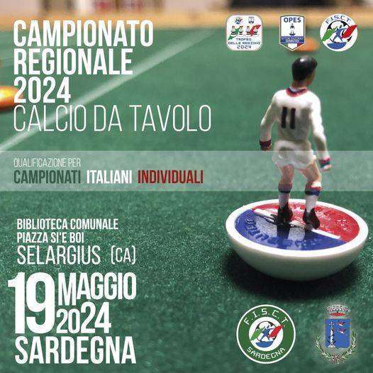 Domenica 19 maggio si disputerà la 45° edizione dei Campionati Sardi di Calcio da tavolo della FISCT Federazione Italiana Sportiva Calcio Tavolo, valido anche come tappa del Trofeo delle regioni FISCT.